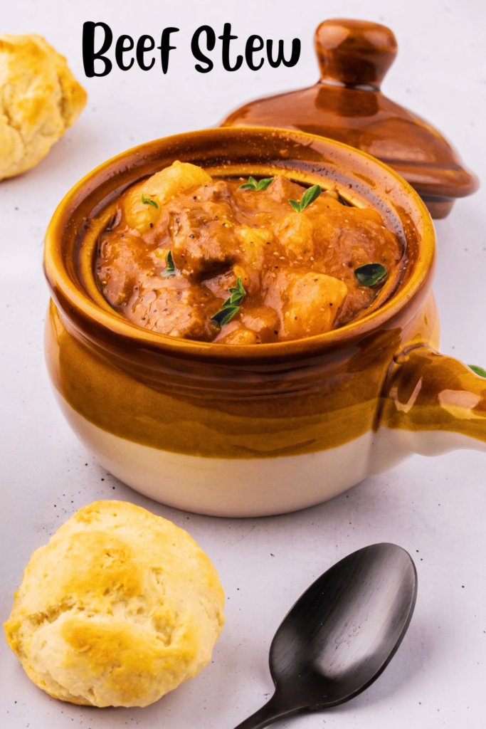 Cook and serve this for dinner when it’s cold, rainy, or snowing outside. Perfect for spring dinners, cold and rainy summer dinners, fall dinners, or winter dinners. Get all the comfort food feels, from a tasty bowl of beef stew to warm you up! Or cook it and serve it when you are craving a hearty meal.