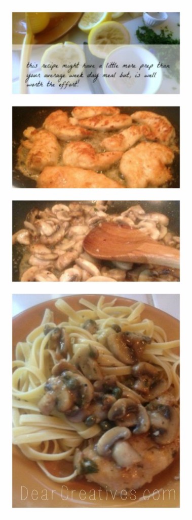 My grandma used to make veal cutlets & veal piccata. I don’t cook veal. End of story. I never thought about making the recipe until I saw it made with chicken by Lizy at Lifelovelibrarianship who linked up at last week’s party. Then it sparked the memory of that lovely dish my grandma used to make, that is minus the veal & with chicken.