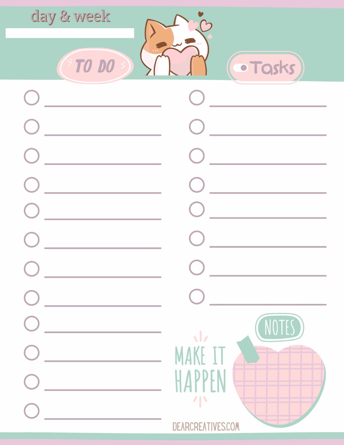 Cute Kawaii Cat Printable To-Do List