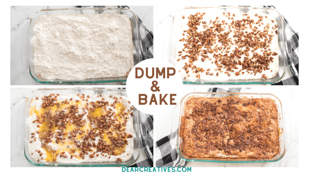 Pumpkin Dump Cake Recipe - Easy recipe with 4 steps and uses a yellow cake mix, pumpkin puree... Print the recipe for this pumpkin cake at DearCreatives.com