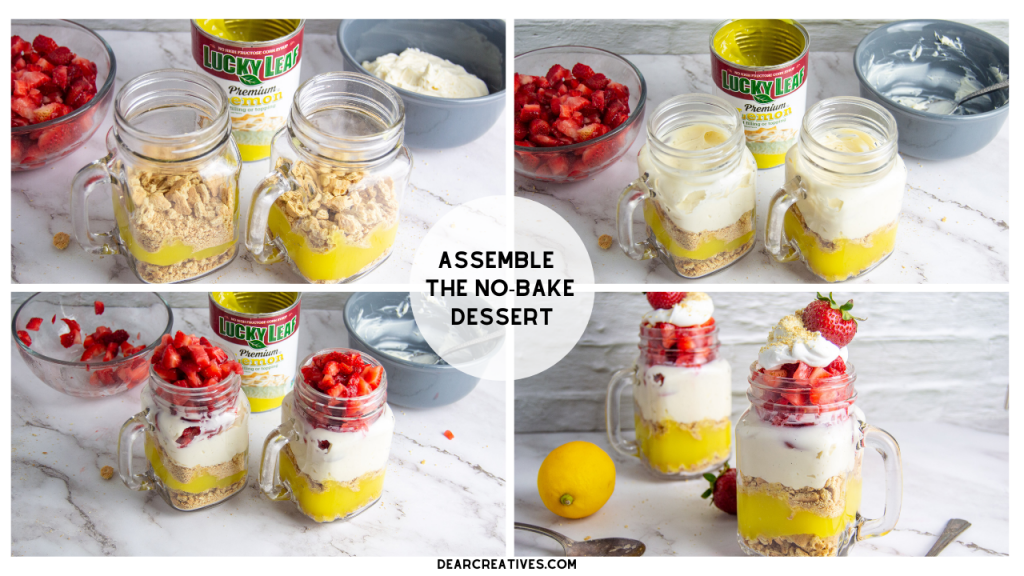 Strawberry Lemon Dessert (No-Bake) – This is delicious, easy to make, and only uses 6 ingredients! 10-minute dessert can be added to mason jars, dessert cups, or bowls.