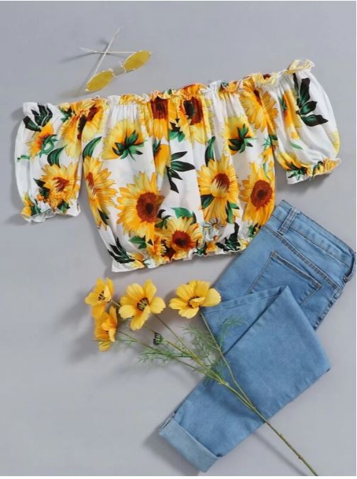 This crop top sunflower print blouse would be so cute on a picnic, date, or paired with jeans for a summer night...